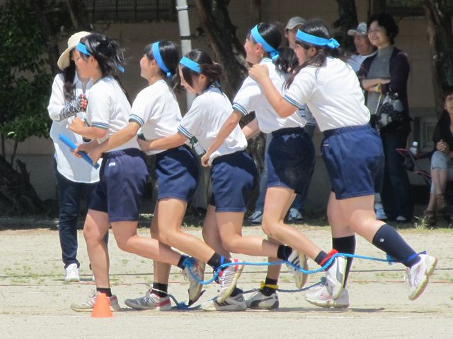 3年生全員による16人17脚。女子と男子でリレーを行いました。全員の息がぴったり合っており、すばらしい走りを見せてくれました。