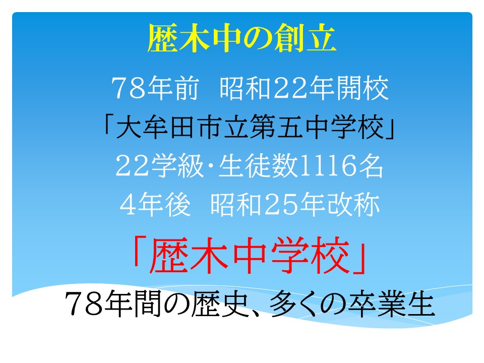 大牟田市立歴木中学校へのホームページへようこそ。